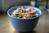 1. Bulgur nasypeme do vařící osolené vody s kapkou oleje. Povaříme 2 minuty. Pak odstavíme a pod pokličkou necháme dojít 15-20 minut.