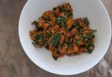 5. Až začne čočka měknout, osolíme ji, přidáme mletý kmín, kurkumu, opraný špenát a povaříme ještě pár minut.