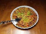 6. Předpečený korpus vytáhneme z trouby, rozmístíme do něj zeleninu, zalijeme smetanovou směsí a pečeme další půl hodinu.