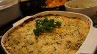 5. Posypeme nastrouhaným tvrdým sýrem, pokropíme rozpuštěným máslem a dáme do vyhřáté trouby zapéct dorůžova.