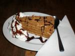 4. Jeden plát pokapeme rumem, potřeme třetinou krému, přiložíme druhý plát a lehce přimáčkneme. Postup opakujeme, končíme vrstvou krému, který hustě posypeme směsí rozdrobených odkrojků s ořechy.