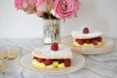 Napoleon s příchutí citronu a malin je nadýchaný italský dezert z listového těsta, lahodného krému a malin. Je ideální ke kávě.