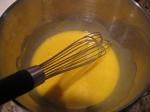 1. Žloutky rozmícháme v mléce s vanilkovým cukrem a pudinkem.