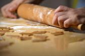 2. Rozválíme na tenko a podle pravítka nařežeme pruhy tak široké, jak dlouhé chceme trubičky. Na kraj pruhu položíme kovovou trubičku a otáčíme ji i s těstem. Až je celá obalená, odřízneme těsto od zbývajícího pruhu a trubičku s těstem položíme na plech vyložený papírem na pečení.