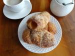Potom vyválejte placku asi 4 mm a rádlem nakrájejte pásky 3 cm široké. Pásky namotejte na trubičky na kremrole, musí se navzájem překrývat. Trdelníky potřete rozpuštěným máslem a posypejte skořicovým cukrem a vanilkovým cukrem. Dejte na plech vyložený pečícím papírem a pečte na 150-160 °C asi na 12-15 minut. Během pečení trdelníky otočte. Upečené znovu obalte ve směsí cukru, skořice a ořechů.
