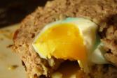 Dvě vejce uvařte natvrdo. Nakrájenou cibuli osmahněte na másle. Přidejte mleté maso, zbylá vejce a petrželku. Promíchejte a ochuťte solí a pepřem. Z masové hmoty vytvarujte podlouhlou šišku a do ní vmáčkněte natvrdo uvařená vejce. Sekanou dejte na vymazaný pekáč a pečte na 200 stupních asi hodinu. Asi po 30 minutách pečení vyjměte sekanou z trouby a její povrch pokryjte plátky slaniny. Poté dopečte. Mezitím si očistěte a nakrájejte na nudličky mrkev a pórek. Zeleninu pět minut poduste na zeleninovém vývaru a dochuťte muškátovým oříškem.Autor: Jil
