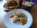 4. Na každý kousek těsta naložíme přibližně lžíci masové směsi, přeložíme na půl a okraje přitlačíme vidličkou.