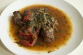 Hovězí maso na červeném víně, rajčatech a švestkách
