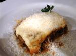 7. Hotovým bešamelem zalijte brambory. Takto připravenou musaku pečte v troubě předehřáté na 180°C zhruba 50 minut. Hotovou musaku můžete na závěr posypat strouhaným parmazánem.