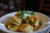 Bramborové taštičky plněné kuřecím masem jsou ideální večeří. Kdo chce ušetřit trochu času, nechť si bramborové těsto připraví ze sáčku.