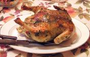 1. Kuře rozčtvrtíme, omyjeme a osušíme. Čtvrtky kuřete ze všech stran osolíme. Česnek rozmačkáme, rozdělíme na čtvrtky a vetřeme ho ze všech stran do masa. V uzavřené nádobě necháme v chladu uležet, nejlépe do druhého dne.
