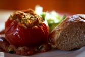 Zapečená plněná rajčata s kuřecím masem a quinoiou