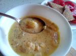 3. Až jsou brambory měkké, polévku odstavíme, ihned přilijeme smetanu se žloutky, promícháme a víc nevaříme.