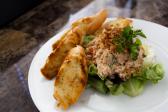 Lehký tuňákový salát se hodí jako předkrm i jako svačinka. Podáváme jej s čerstvým pečivem, ideálně bagetkou nebo toastem. Tuňákový salát