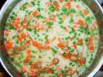 3. Hotovou rýži smícháme se zeleninou a podle chuti osolíme a opepříme. Můžeme vmíchat i rozmačkaný stroužek česneku.