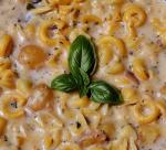2. Na rozpáleném oleji krátce osmahneme česnek se šunkou (slaninou) a zalijeme smetanou. Přisypeme sýr a za stálého míchání vaříme do úplného roztavení sýra.