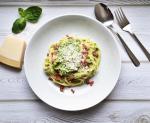 Špagety na kari. Receptů na těstoviny je mnoho, my pro vás dnes máme jeden netradiční na špagety na kari s hráškem a uzenou krkovicí.
