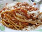3. Podle chuti přisolíme. Dovaříme špagety, scezené servírujeme na talíř, přelijeme omáčkou a posypeme sýrem.