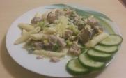 Těstoviny s kuřecím masem a pórkovou omáčkou