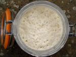 3. den: Promícháme, přidáme 50 g mouky a 60 ml vody, promícháme. Kvásek začne výrazně zvětšovat objem, pozor ať máme dost velkou nádobu.